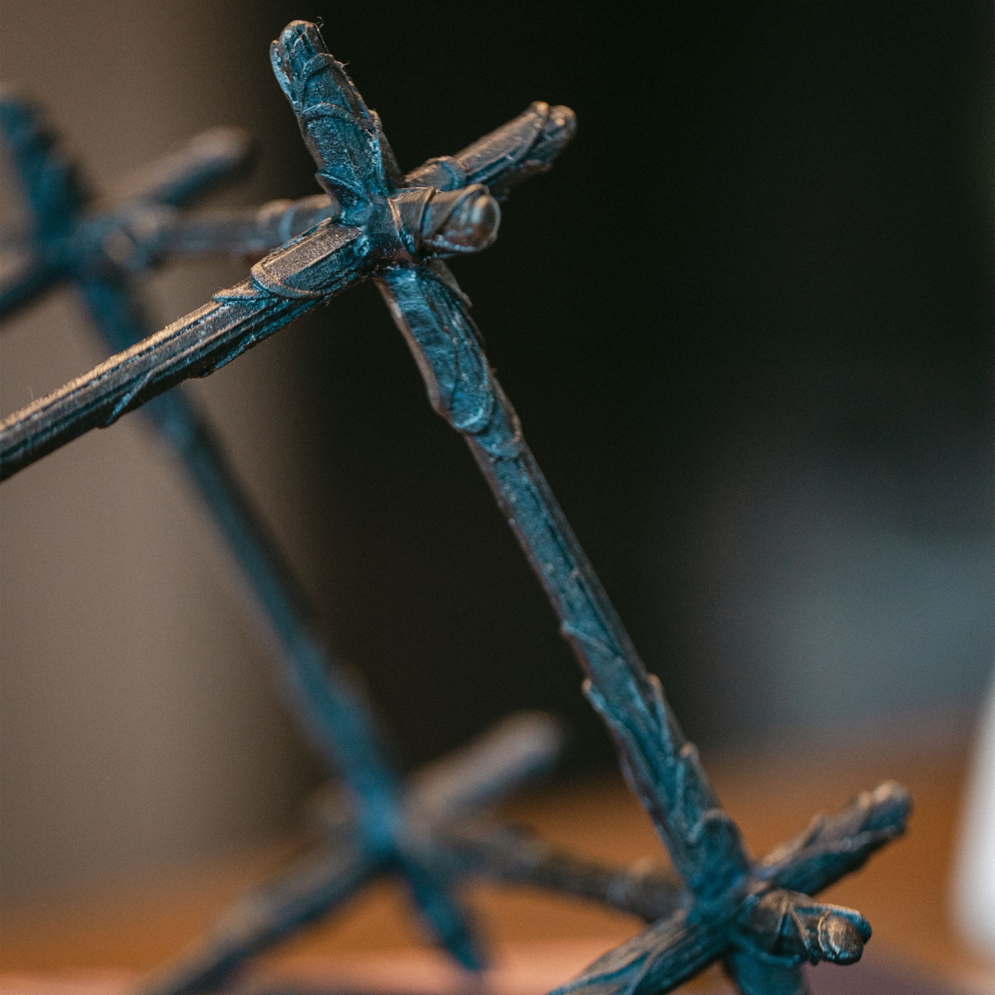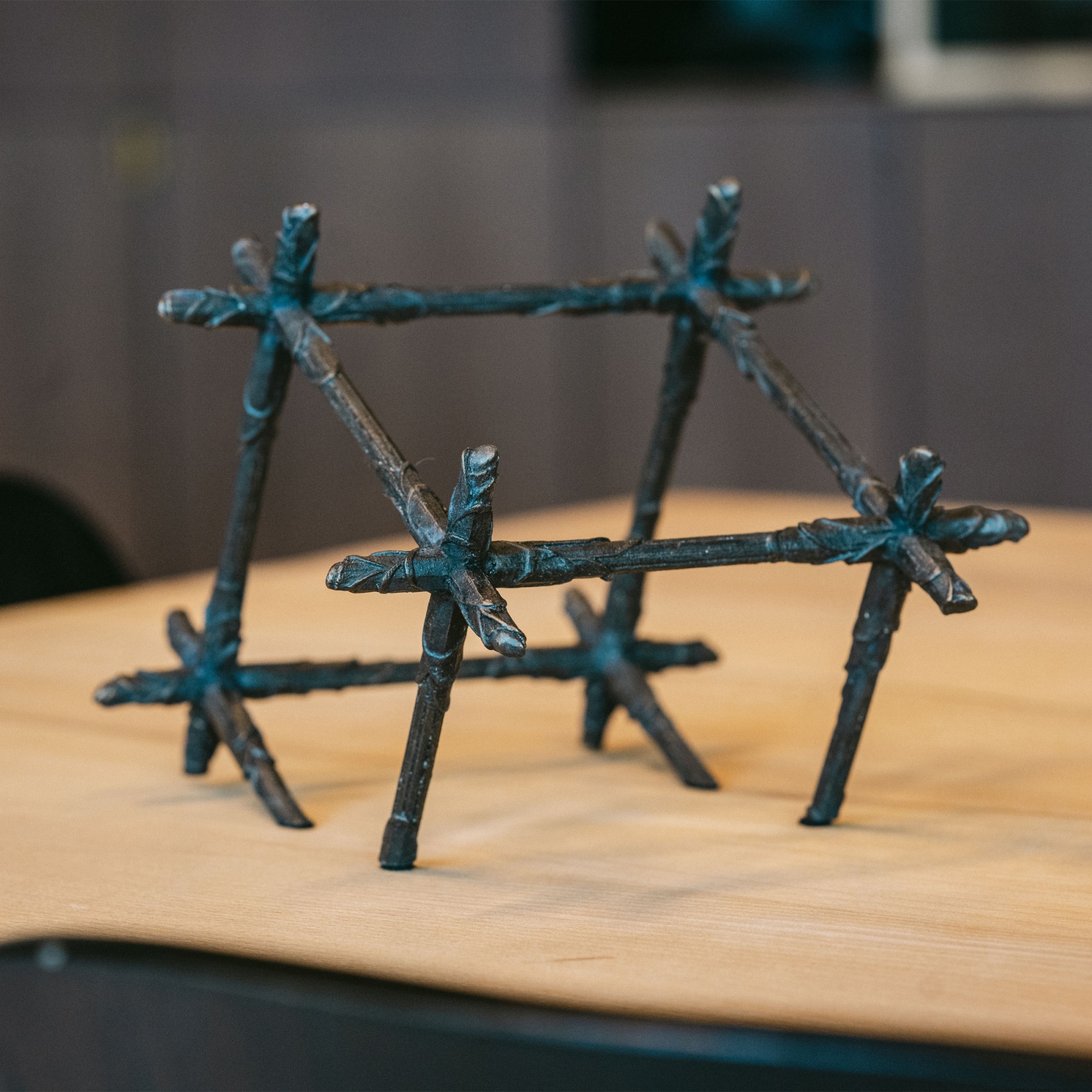 The creation of this exceptional piece proved to be a challenge for the foundry. Each cube required many hours of work. The 'Urbicande Cube' was first created digitally on a computer by a developer and then printed in 3D resin. The foundry used this resin to cast the bronze using the lost wax technique. It took the foundry several months to achieve this result: straight, parallel edges, a perfect finish and a beautiful patina.