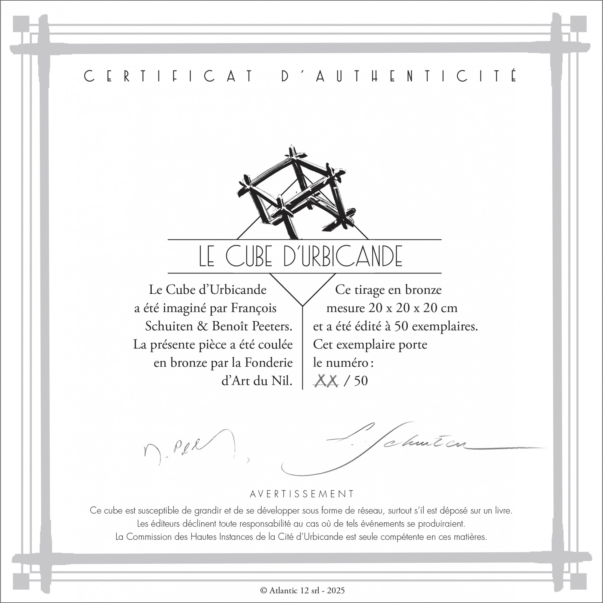 Bronze artwork by the Fonderie d'Art du Nil, limited to 50 copies, each accompanied by a certificate of authenticity numbered and signed by François Schuiten and Benoît Peeters.