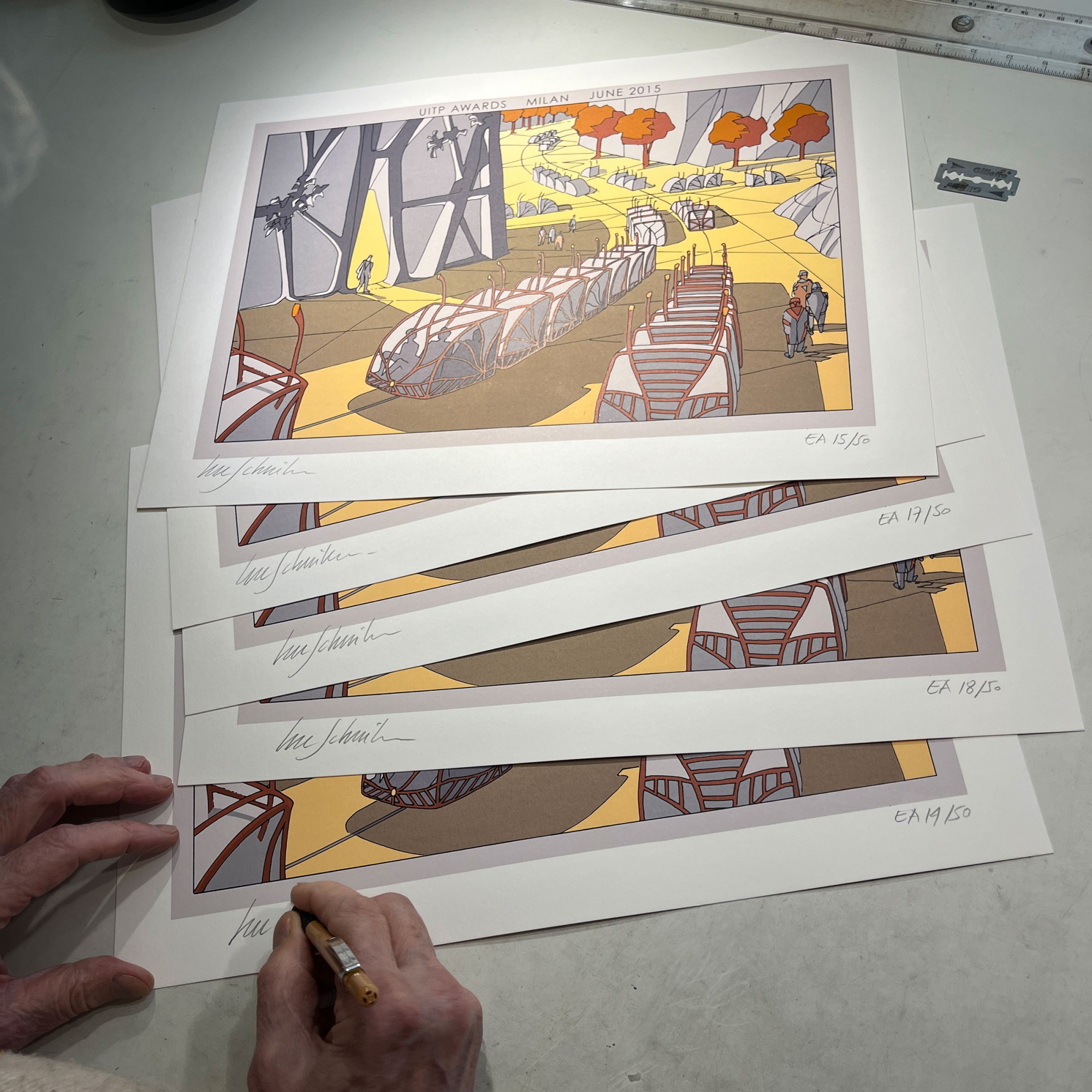 Chez Atlantic 12 (à Bruxelles), qui reproduit les meilleurs dessins de François Schuiten et d’autres artistes, on est particulièrement soucieux de la qualité, quelles que soient les impressions offset, les sérigraphies ou les digigraphies (tirages pigmentaires haute définition), le tout sur un adéquat et excellent papier. Chaque exemplaire est numéroté et signé, à la main, par l’(es) auteur(s). Les commandes sont expédiées par poste avec attention et rapidité.Michel B. (Google, 2024)