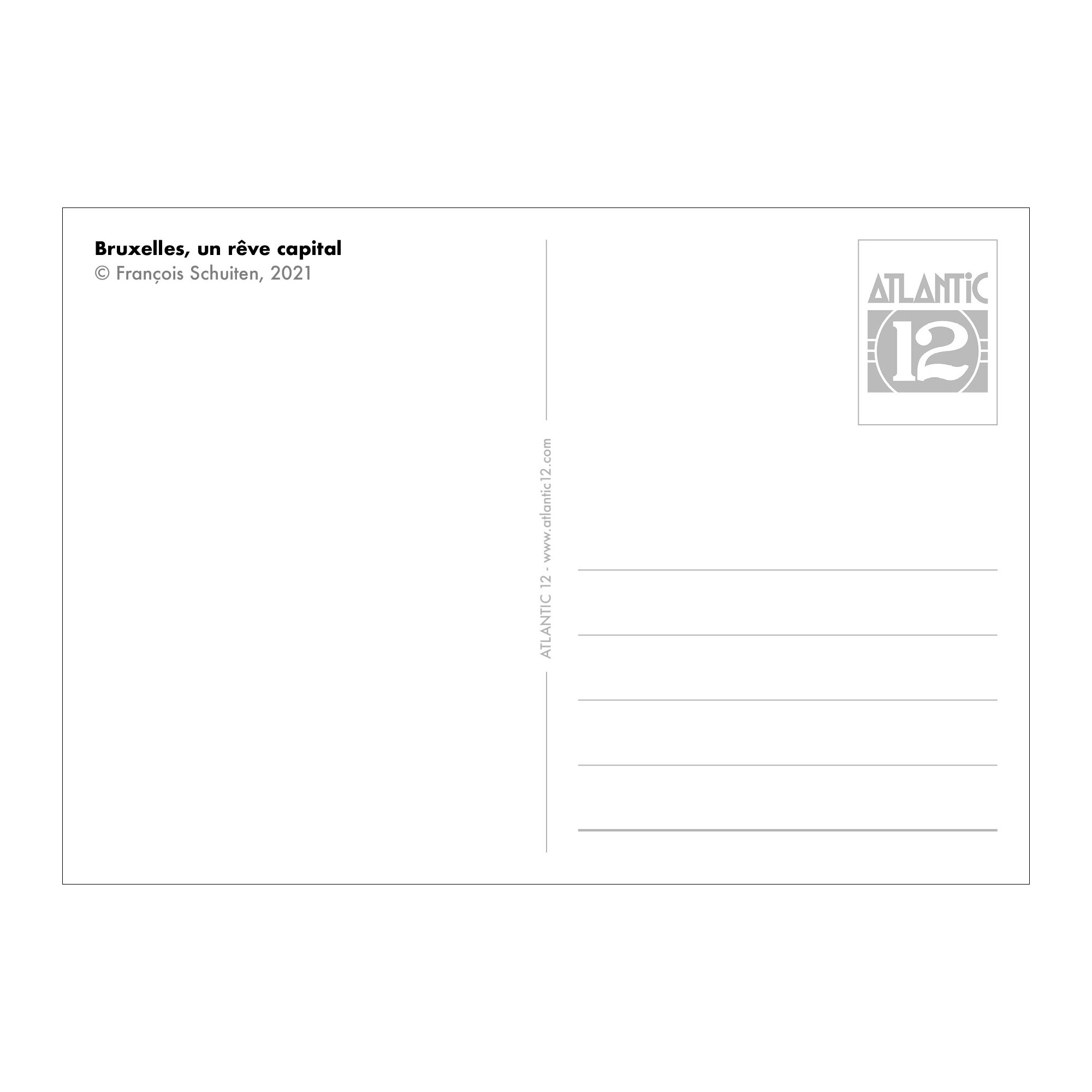 Chez Atlantic 12 (à Bruxelles), qui reproduit les meilleurs dessins de François Schuiten et d’autres artistes, on est particulièrement soucieux de la qualité, quelles que soient les impressions offset, les sérigraphies ou les digigraphies (tirages pigmentaires haute définition), le tout sur un adéquat et excellent papier. Chaque exemplaire est numéroté et signé, à la main, par l’(es) auteur(s). Les commandes sont expédiées par poste avec attention et rapidité.