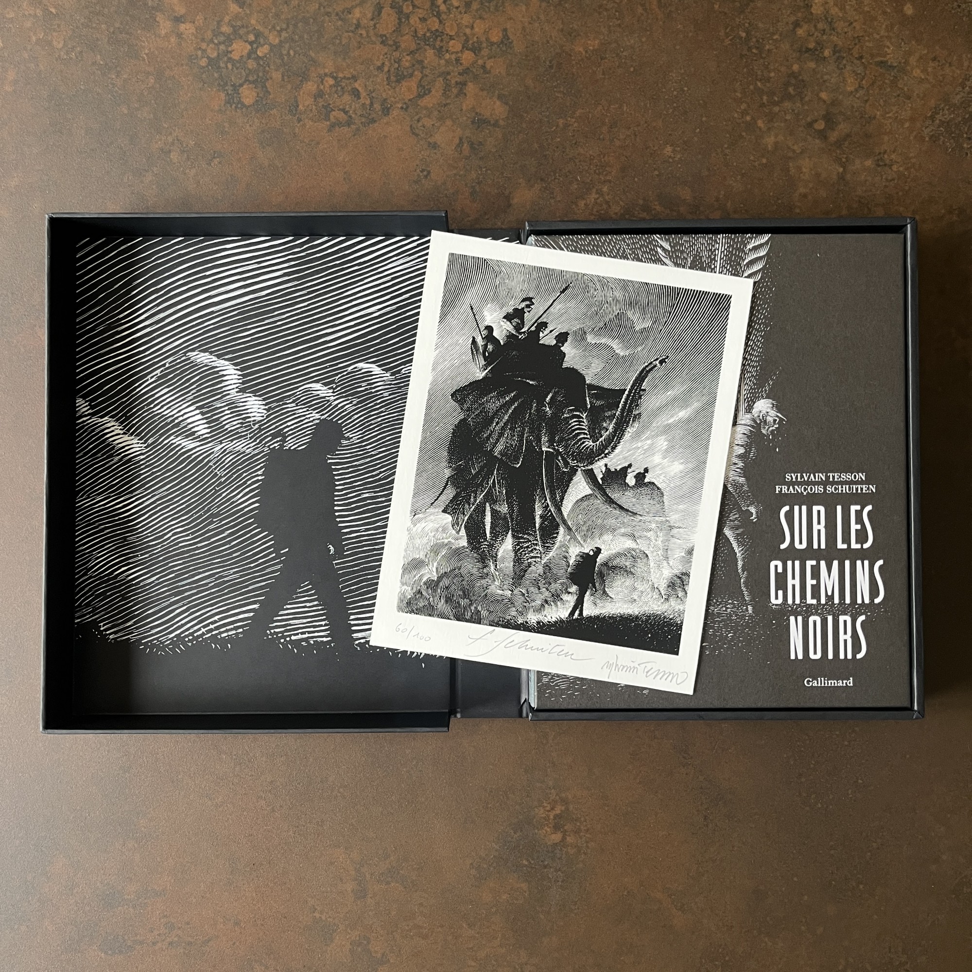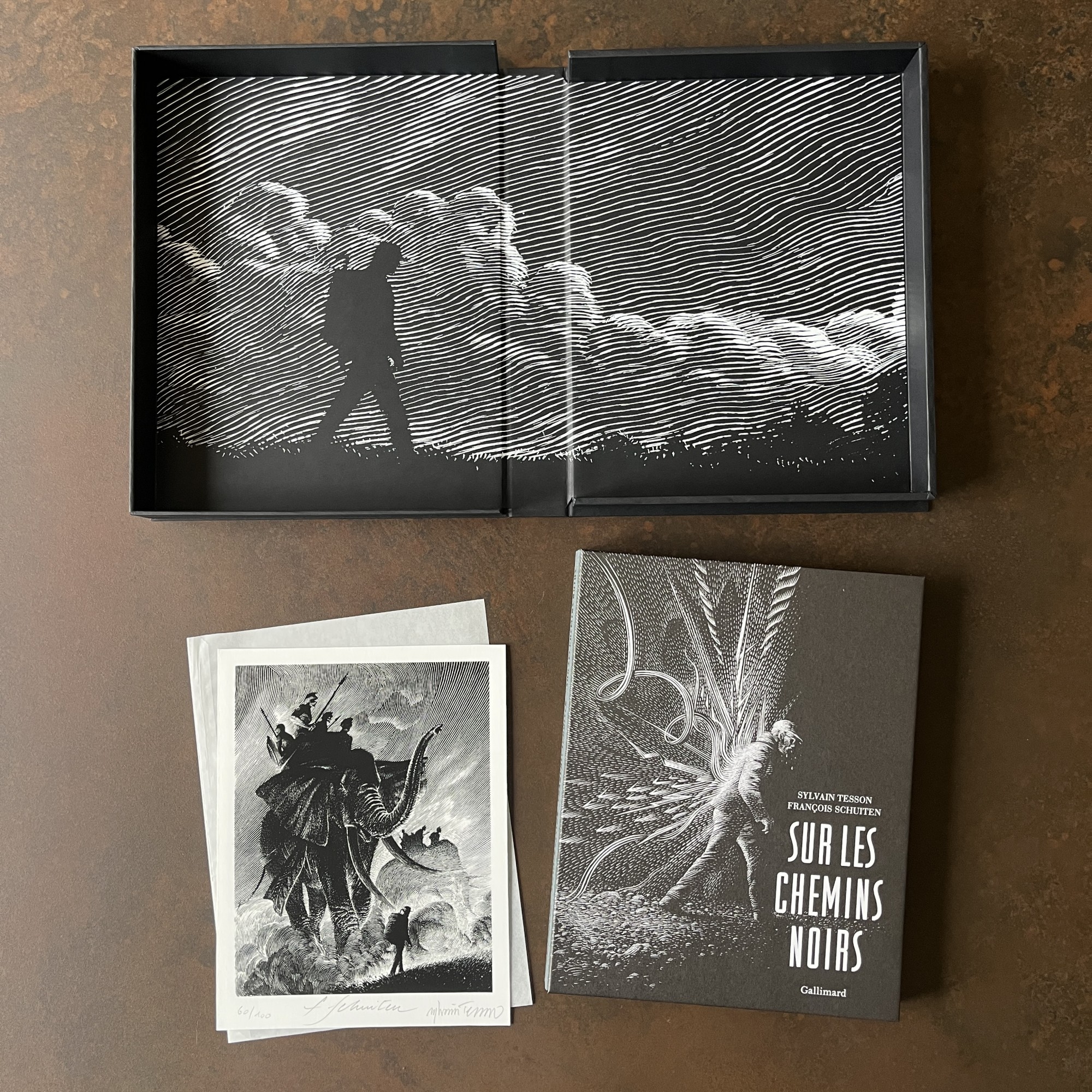 Ce tirage de tête, superbement réalisé (graphisme par Philippe Ghielmetti), est rehaussé d'un jaspage noir et présenté dans un coffret illustré en sérigraphie. Il inclut un ex-libris imprimé aux encres pigmentaires, numéroté et signé par François Schuiten et Sylvain Tesson.